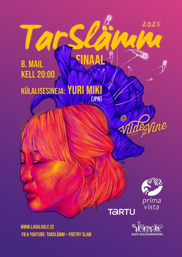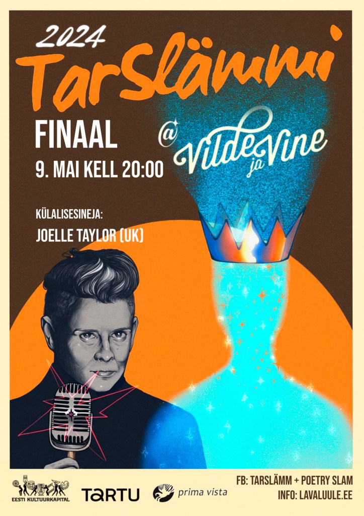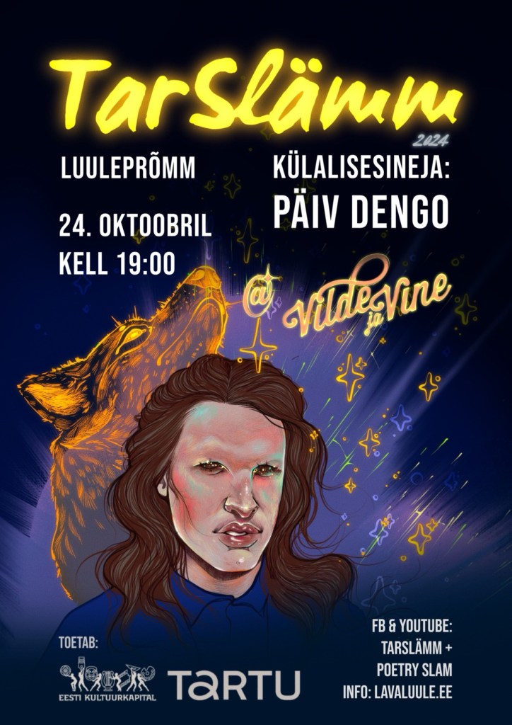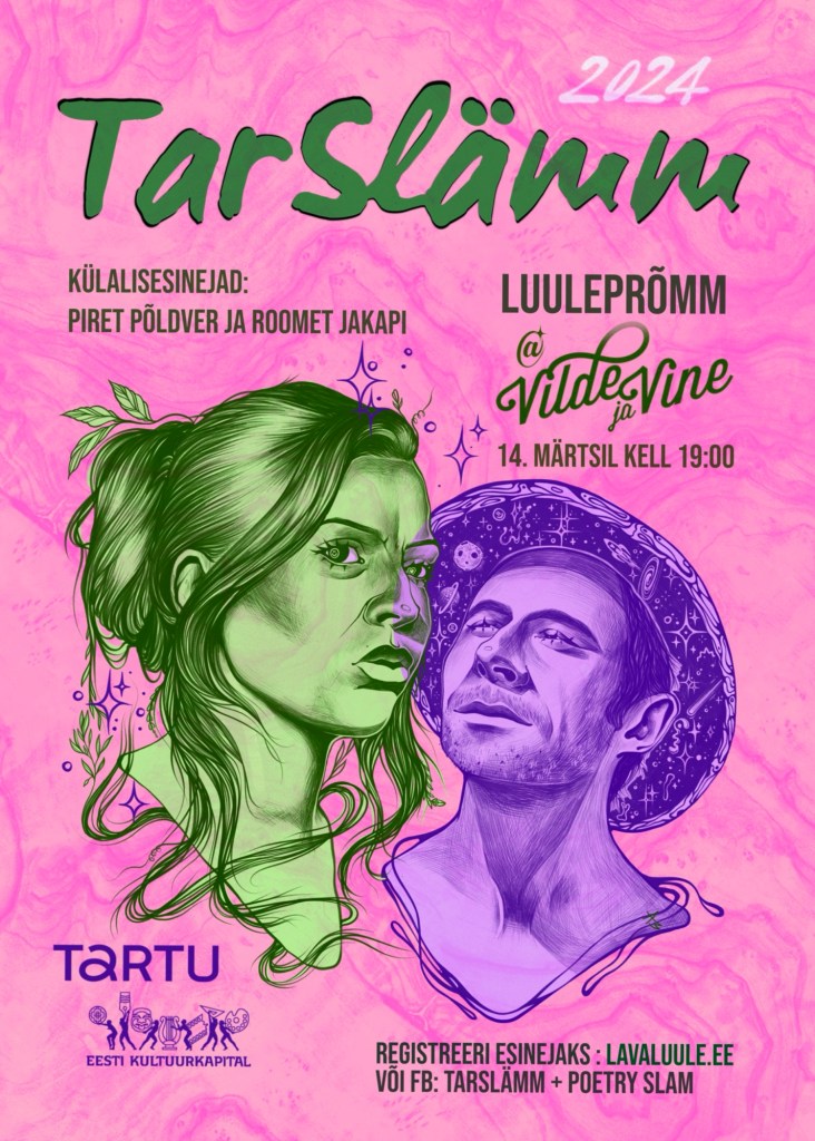 TarSlämm is a series of poetry slam nights in Tartu created by Lavaluule MTÜ and is supported by Vilde ja Vine, Tartu City, University of Tartu and the Cultural Endowment of Estonia.